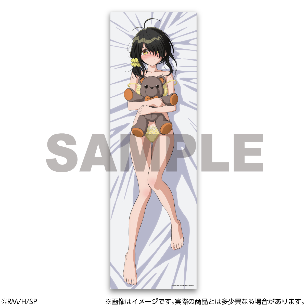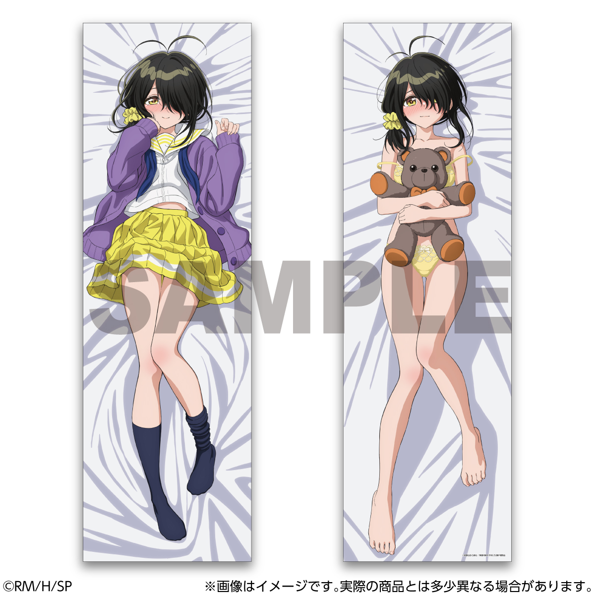 裏面は黄色の下着姿で、お気に入りのぬいぐるみを抱きながら恥ずかしそうにこちらを見つめる姿をそれぞれイメージ。